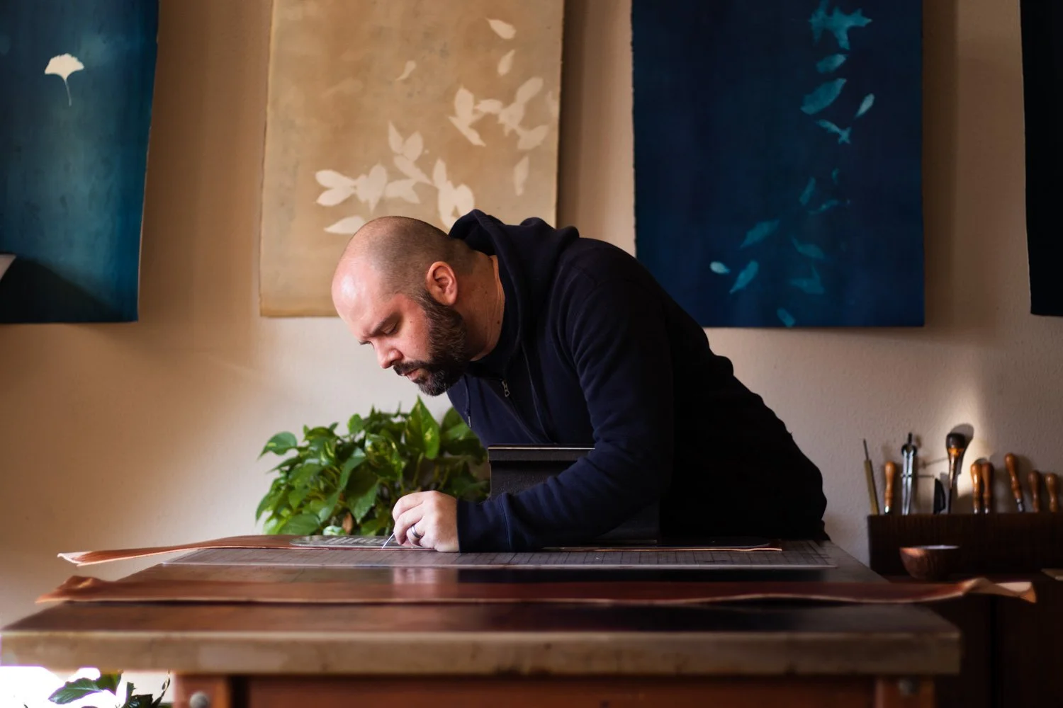 Jordan Elias Lee (b. 1981) is an artist living in Cleveland Heights, OH. His practice spans many mediums from photographic cyanotypes to hand dyed leather works. Finding awe in the commonplace, creating open space filled with subtle textures, and celebrating simplicity and serenity are common themes in his work.