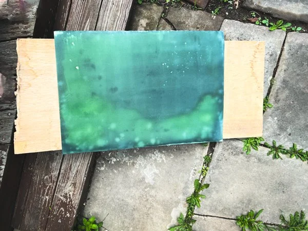 The full weight of the sun floods onto the surface of the paper. The paper reacts. From green-yellow to blue-grey. The image captured permanently in sun burnt iron molecules...