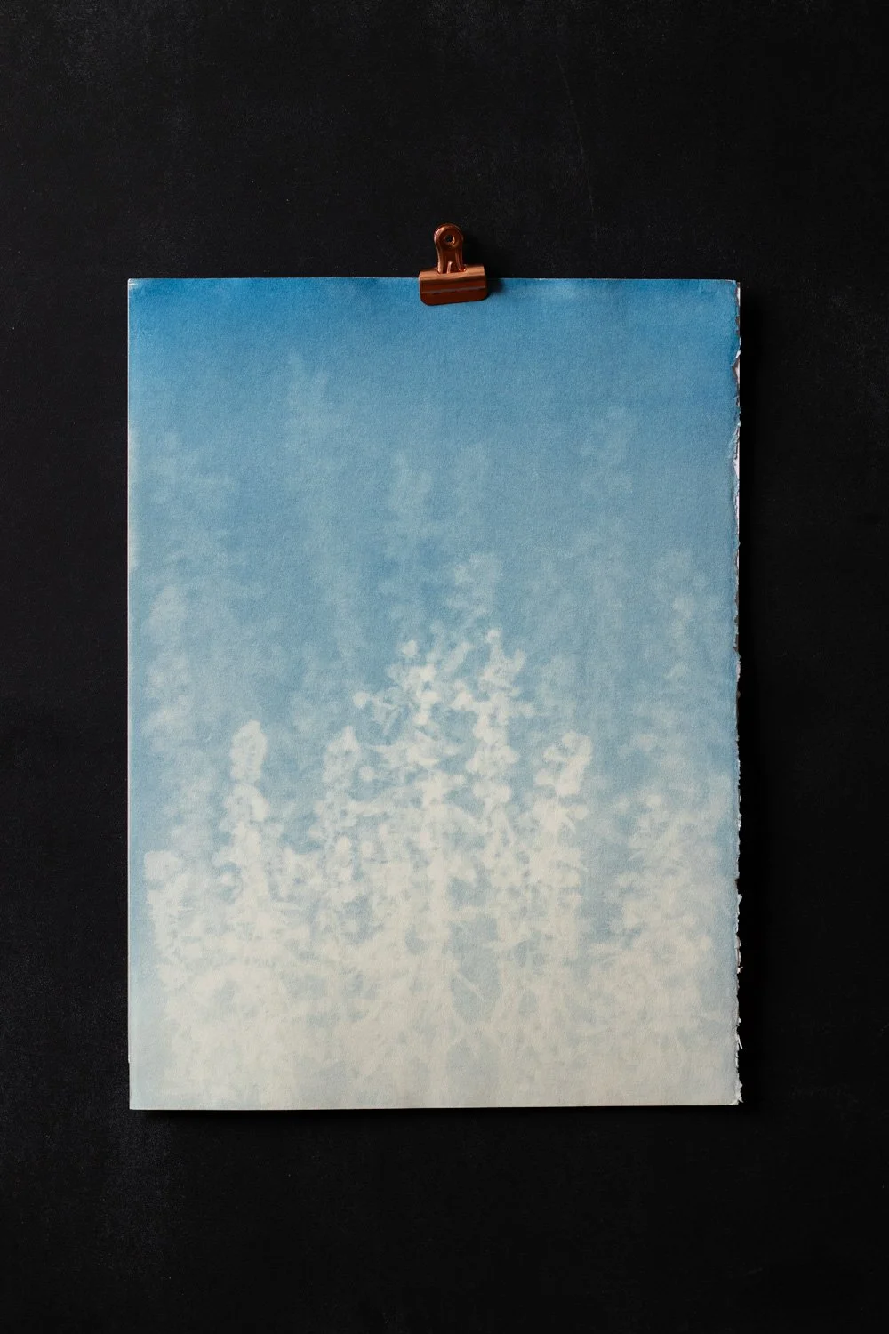 Cleveland in January is typically grey. The sunlight I need to make my exposures is absent until early spring. Normally this means a period of dormancy when it comes to making new images. Sowing Seeds came about when I tried to lean into the idea of not having enough light. The light sensitive paper was set out on my dim basement workbench. The only light was from a small glass block window. Every morning I would come down into the cold basement and shift the leaves and petals around. Each image was made over the course of weeks worth of exposure. They are records of time. Week’s worth of light collected and used to record the shadows of last year’s greenery while thinking about the promise of a coming spring. Sowing Seeds in the Dark is about patience and gentle hope.